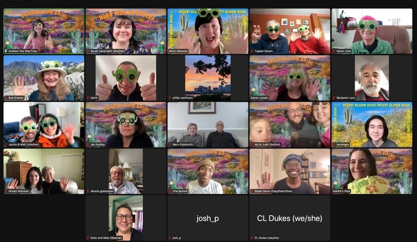 WHAT: Our 2nd annual warm weather-themed winter party, DESERT BLOOM BASH! This virtual event will be a free, fun-filled, musical (and warm!) get-together over Zoom. Together, we’ll enjoy some live music, creative conversation, improv games (where audience members are invited to type words and prompts into the chat box, and we make up music on the spot!), and special goodies from our Desert Bloom Packages, made up of hand-crafted goodies & fun surprises that will arrive in small recycled and compostable packaging - sign up on the RSVP form)